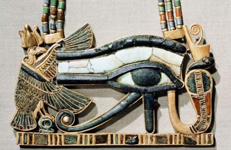 În Egiptul Antic simbolurile pentru protecție conectate la centrul de putere al viziunii și voinței, Chakra 6, erau: Ochiul Lui Ra (având culoarea Roșie – prin care forța Kundalinii întâlnea elementul Foc), Ochiul lui Horus (având culoarea Albastru – prin care forța Kundalini întâlnea elementul Apă) și Ochiul lui Isis~Maat (simbolic poate fi asociat cristalului Lapis Lazuli) care protejează dreptul divin regal din naștere și dincolo de moarte.