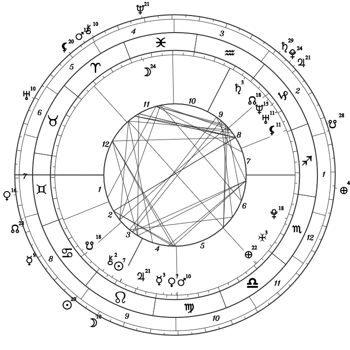 În interiorul schemei se află pozițiile natale. La periferia cercului se găsesc tranzitele curente.